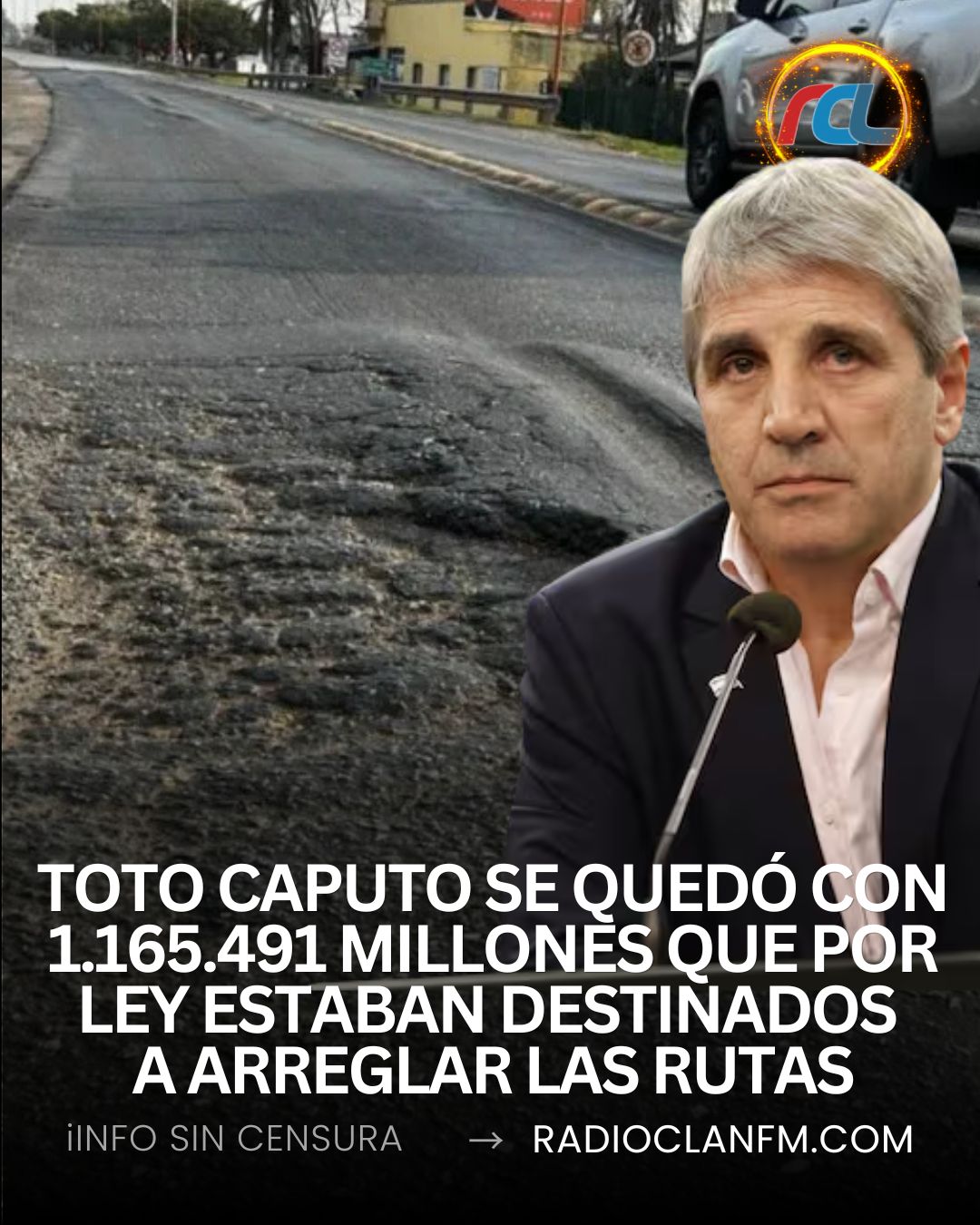 La cifra fue calculada por un grupo de veinte diputados peronistas que se tomaron el trabajo de analizar todos los fondos que retuvo ilegalmente el ministro Toto Caputo del Impuesto a los Combustibles (ver documento adjunto) que por ley del Congreso obliga a asignar el 28,58% de lo recaudado al Sistema Vial Integrado (Sisvial), a cargo de mantener y mejorar las rutas del país.